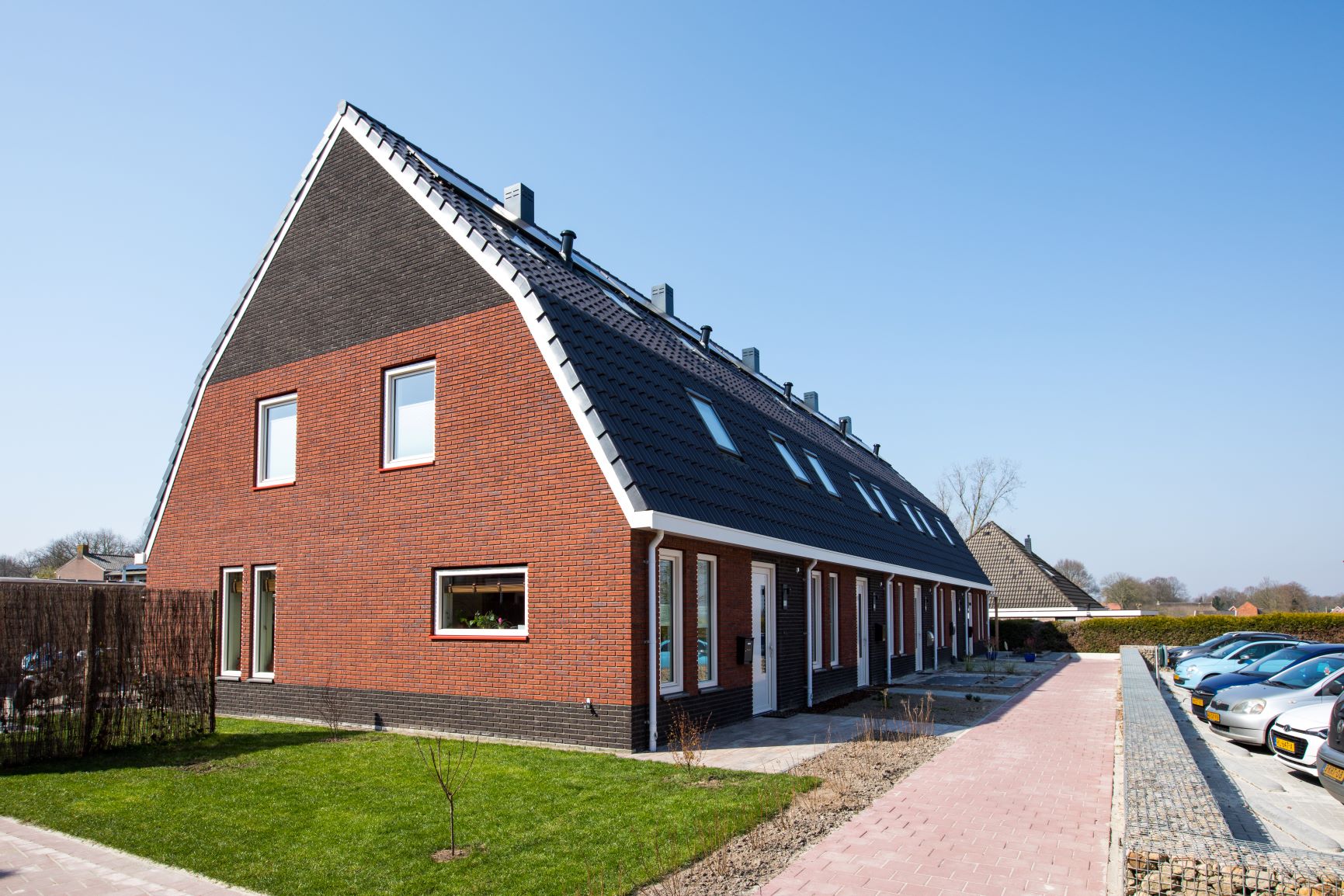 Er is gekozen voor een dak in de vorm van een mansarde kap. De lage dakgoot geeft de woningblokken een dorpsaanzicht. Daarnaast biedt de mansarde kap veel extra binnenruimte en is er een vaste trap naar de zolderverdieping.