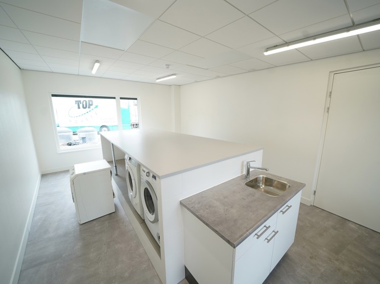 Naast de studio’s voor 24-uurszorg hebben we ook de Teampost en facilitaire ruimtes, zoals een wasruimte en een opslagruimte, gerealiseerd. De Teampost is onderverdeeld in kantoor, spreekkamer, pantry, toiletten en de medicijnkamer. Binnen het complex bevinden zich vier eetkeukens waar patiënten hun warme maaltijd bereiden en opeten.