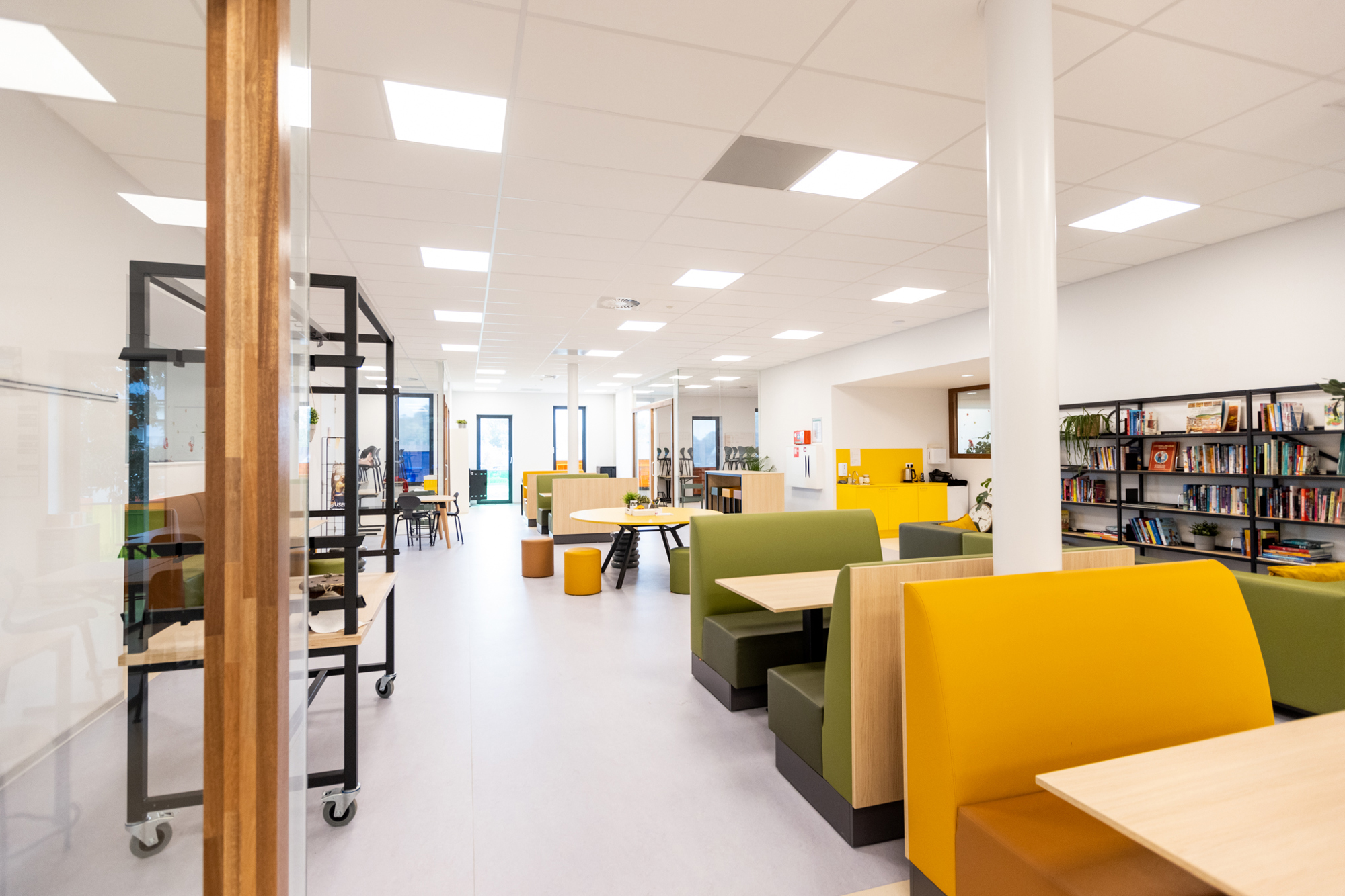 Campus Damwâld gaat voor een gezonde leeromgeving. Klimaatbeheersing en groen (zowel binnen als buiten) spelen een grote rol, maar ook de gezondheid in het onderwijs is belangrijk. Zo worden kinderen uitgedaagd om meer te lopen en te bewegen in het gebouw.