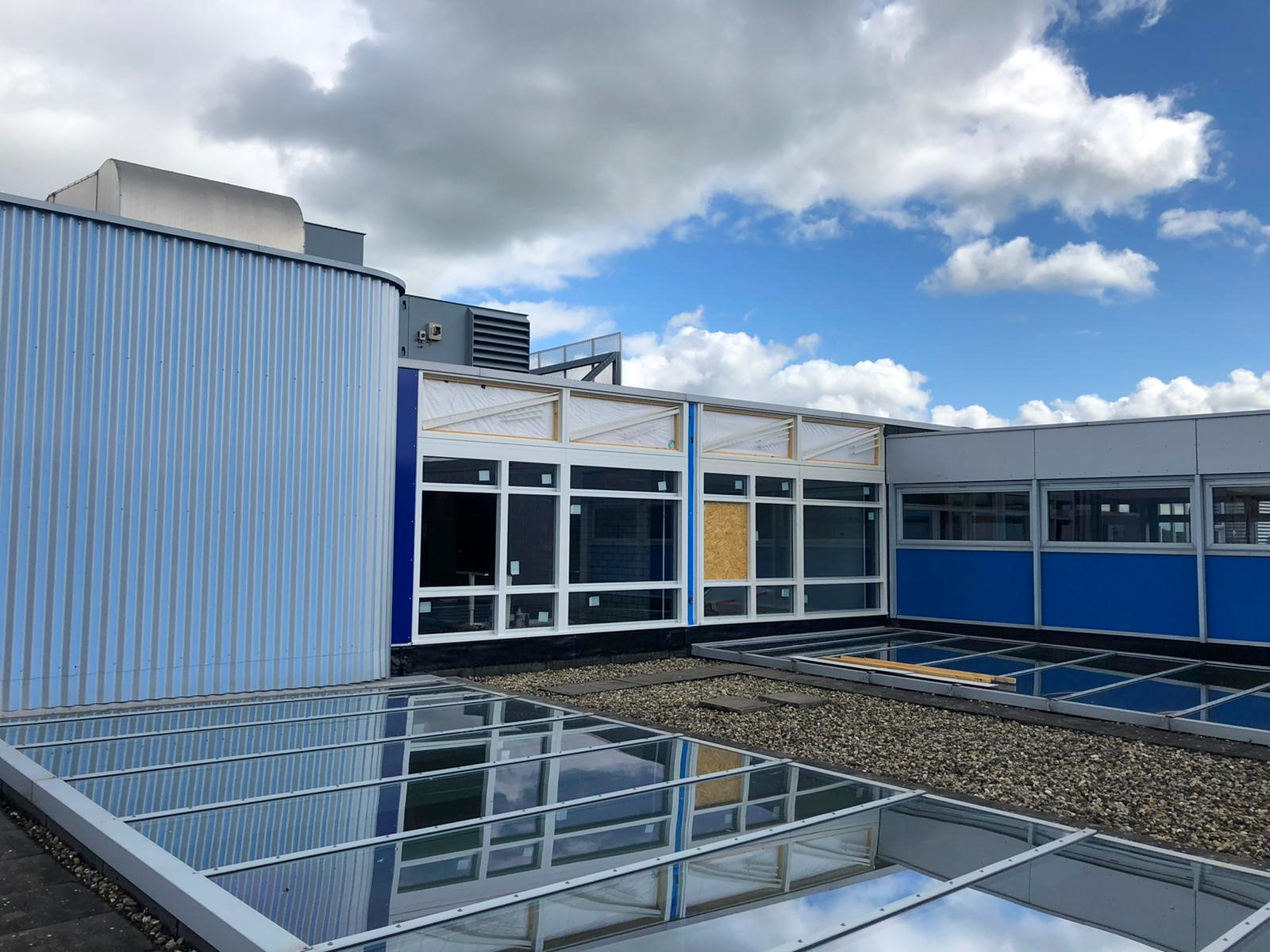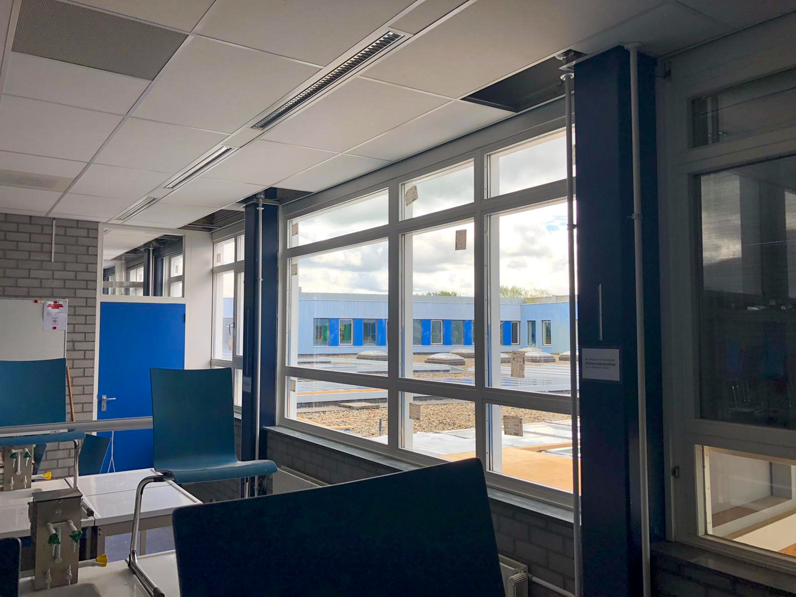 Vanwege de Coronacrisis konden de werkzaamheden eerder starten dan gepland. Daardoor zullen de oude kozijnen ruim voor aanvang van het nieuwe schooljaar vervangen zijn en kan het schoolgebouw er weer jaren tegenaan.