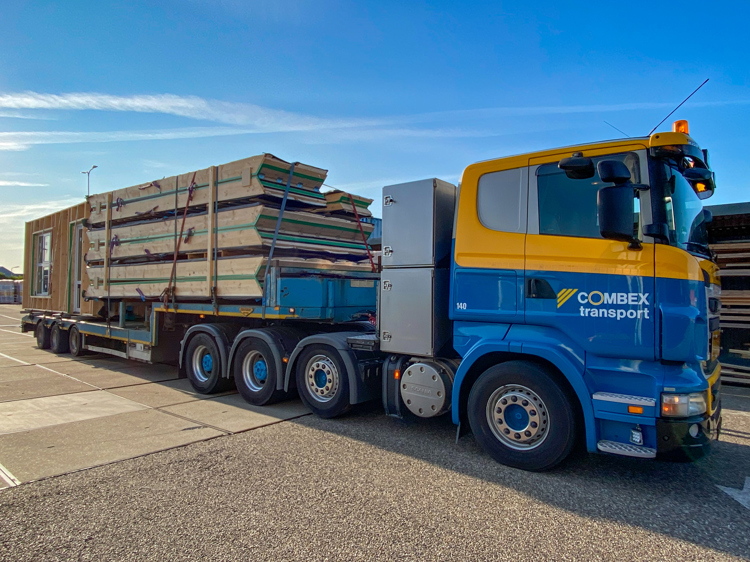 De gevels en daken worden via Combex transport vanuit de fabriek in Dokkum naar Siddeburen gebracht. Hier wordt er 1 woning per dag opgezet.