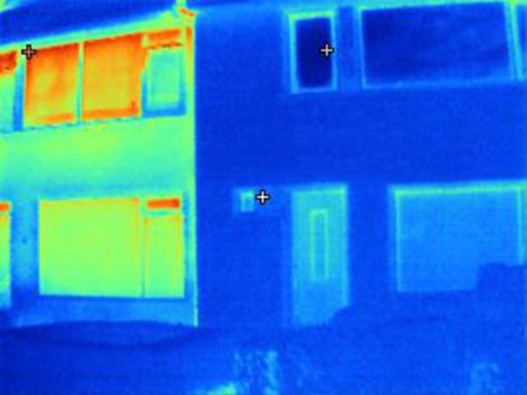 De nieuwe geïsoleerde gevel is tegen de bestaande gevels geplaatst en hiermee is de woning dus opnieuw 'ingepakt'. Dit noemen we ook wel een schilrenovatie. Wat het resultaat is van een schilrenovatie? Om dit duidelijk te maken, hebben we een foto's gemaakt met een warmtecamera. Links de oude woning (voor de renovatie), rechts de woning mét isolatieschil. Het is duidelijk dat er bij de oude woning veel meer warmte verloren gaat dan bij de nieuwe woning met isolatieschil.