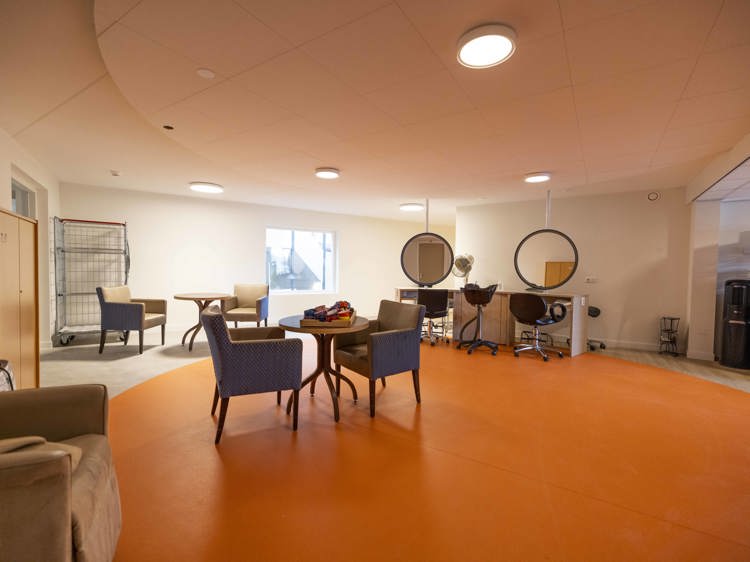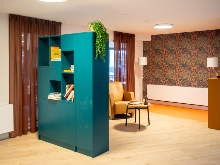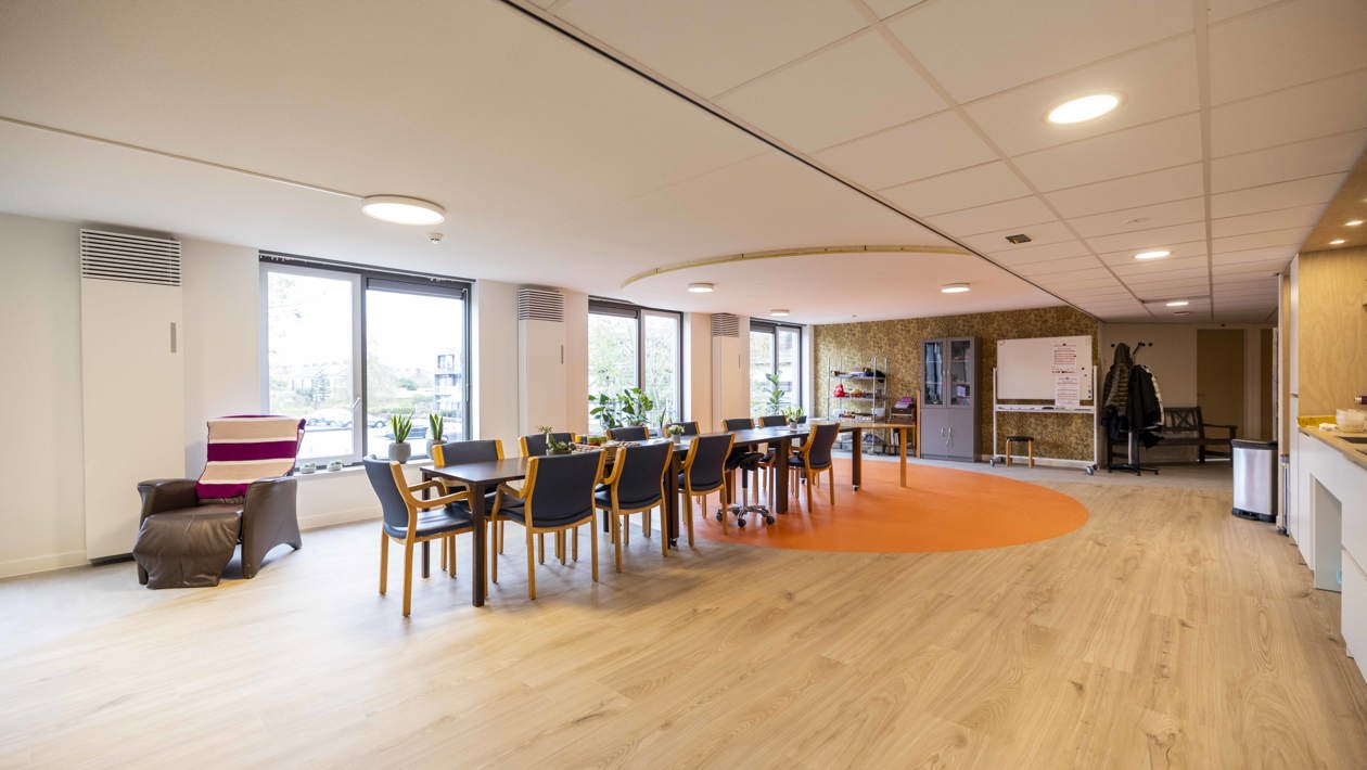 Op de begane grond realiseren we een nieuwe huiskamer en verbouwen we de entree en het restaurant. Op de eerste verdieping maken we nieuwe kantoren, stilteruimtes en werkplekken. De bestaande dagopvang is aangepast naar een grote huiskamer met aangelegen ruimten voor wellness en fysio, mondzorg en een kapper. Op de tweede verdieping realiseren we een nieuwe vergaderzaal en doen we diverse aanpassingen aan kantoorruimte en huiskamer, keuken, toiletgroepen en kleed- en doucheruimtes voor het personeel.